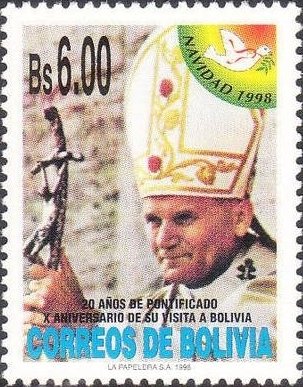 Visibility: public Image owner: none postage 11/26/1998 6b multi issue=Christmas 1998 unwmk Crops No visible images cropped from this one. Measurements Resolution is unknown. Source Source name: Colnect File URL: http://i.colnect.net/b/1935/240/Pope-Paul-II-in-Bolivia-1988.jpg Uploaded March 12, 2014, 3:59 pm by Stan Shebs |