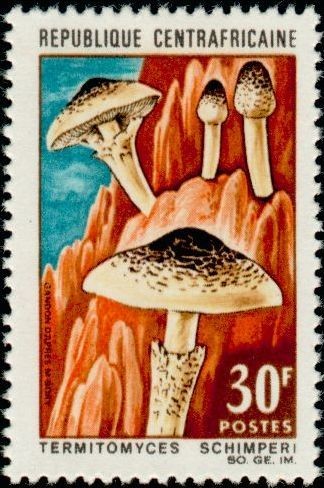 Visibility: public Image owner: none postage 10/3/1967 30fr dt=mushrooms (1967 Central Africa) d=Termitomyces schimperi unwmk Crops No visible images cropped from this one. Measurements Resolution is unknown. Source Source name: Colnect File URL: http://i.colnect.net/b/1054/139/Termitomyces-schimperi.jpg Uploaded August 21, 2014, 10:02 pm by Stan Shebs |