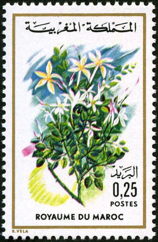 Visibility: public Image owner: none postage 1/10/1975 0,25(d) multi dt=flowers (1975 Morocco) d=Jasminum grandiflorum unwmk perf=14x13.5 Crops No visible images cropped from this one. Measurements Resolution is unknown. Source Source name: Colnect File URL: http://i.colnect.net/images/b/1894/953/Jasminum-grandiflorum.jpg Uploaded March 27, 2014, 6:25 am by Stan Shebs |