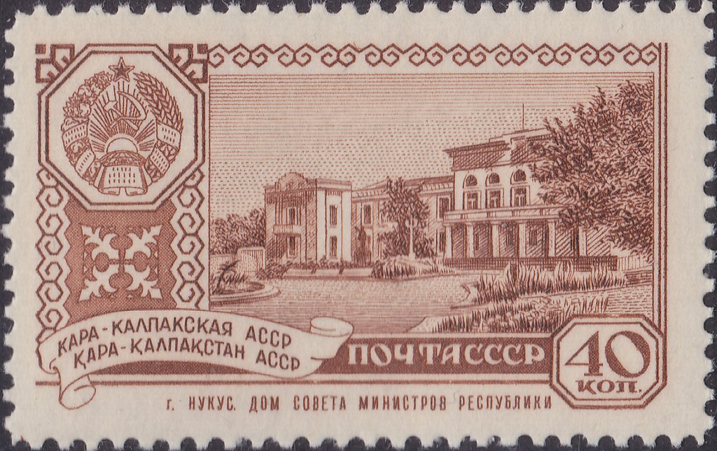 Visibility: public Image owner: none postage 5/30/1960 40k issue=republic capitals 1960 d=Nukus unwmk perf=12 Crops No visible images cropped from this one. Measurements Resolution is unknown. Source Source name: Colnect File URL: http://i.colnect.net/b/1867/971/Karakalpakstan-ASSR-Nukus-House-Council-of-Ministers.jpg Uploaded May 19, 2014, 7:18 pm by Stan Shebs |