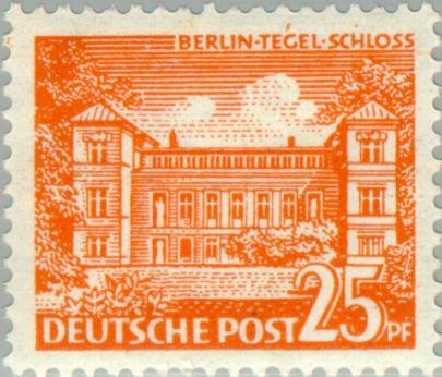 Visibility: public Image owner: none postage 3/21/1949 25pf org issue=1949 dt=Berlin sights d=Tegel Castle wmk=DEUTSCHE POST perf=14 Crops No visible images cropped from this one. Measurements Resolution is unknown. Source Source name: Colnect File URL: http://i.colnect.net/b/154/760/Tegel-Castle.jpg Uploaded August 22, 2014, 3:44 pm by Stan Shebs |