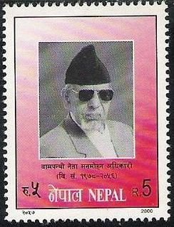 Visibility: public Image owner: none postage 9/7/2000 5r multi dt=Personalities (2000 Nepal) d=Krishna Prasad Koirala unwmk Crops No visible images cropped from this one. Measurements Resolution is unknown. Source Source name: Colnect File URL: http://i.colnect.net/b/2065/385/Manamohan-Adhikari.jpg Uploaded July 3, 2014, 3:34 pm by Stan Shebs |