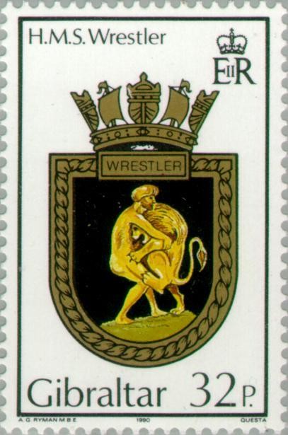 Visibility: public Image owner: none postage 7/10/1990 32p multi dt=Royal Navy ship's badges (1985) d=badge of HMS Wrestler wmk=mult crown & script CA Crops No visible images cropped from this one. Measurements Resolution is unknown. Source Source name: Colnect File URL: http://i.colnect.net/images/b/120/600/HMS-Wrestler.jpg Uploaded August 22, 2014, 5:15 pm by Stan Shebs |