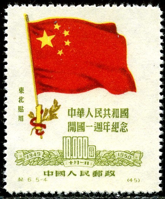 Visibility: public Image owner: none postage 10/1/1950 $10000 issue=First Anniversary of the People's Republic of China d=flag of PRC Crops No visible images cropped from this one. Measurements Resolution is unknown. Source Source name: Colnect File URL: http://i.colnect.net/b/1606/794/Chinese-flag.jpg Uploaded July 23, 2014, 5:15 pm by Stan Shebs |