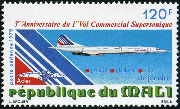 Visibility: public Image owner: none airmail 1/25/1979 120fr multi issue=3rd Anniversary of First Commercial Concorde Flight d=Concorde and Clement Ader's "Eole" unwmk perf=13 Crops No visible images cropped from this one. Measurements Resolution is unknown. Source Source name: Colnect File URL: http://i.colnect.net/images/b/2223/503/Core-airplane-Concorde.jpg Uploaded September 23, 2014, 10:33 pm by Stan Shebs |