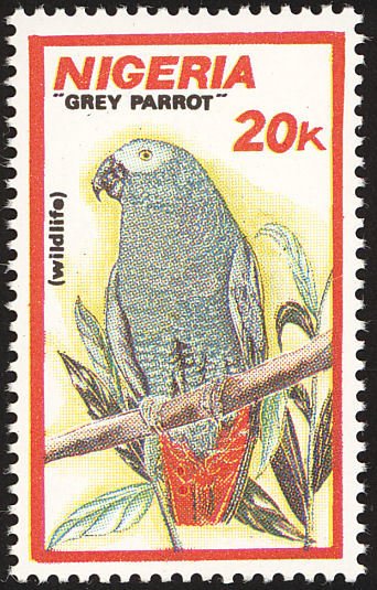 Visibility: public Image owner: none postage 11/8/1990 20k multi dt=wildlife (1990 Nigeria) d=Psittacus erithacus (1990 Nigeria) wmk=mult crown & script CA perf=14 Crops No visible images cropped from this one. Measurements Resolution is unknown. Source Source name: Colnect File URL: http://i.colnect.net/b/2287/596/African-Grey-Parrot-Psittacus-erithacus.jpg Uploaded October 20, 2014, 2:59 am by Stan Shebs |