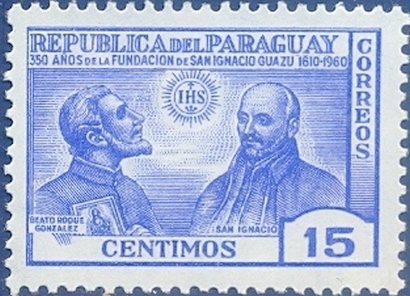 Visibility: public Image owner: none postage 4/18/1966 15c multi issue=350th Anniversary of Founding of San Ignacio Guazu Monastery unwmk perf=11 Crops No visible images cropped from this one. Measurements Resolution is unknown. Source Source name: Colnect File URL: http://i.colnect.net/b/2306/774/St-Ignatius-of-Loyola-and-the-building.jpg Uploaded October 26, 2014, 3:33 pm by Stan Shebs |