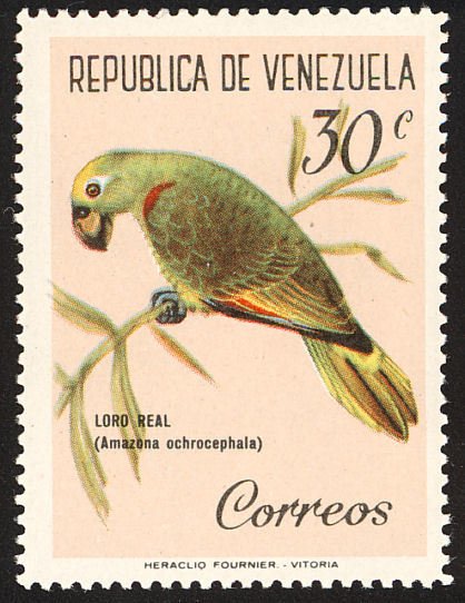 Visibility: public Image owner: none postage 9/6/1961 30c multi dt=birds (1961 Venezuela) d=Amazona ochrocephala (1961) unwmk perf=14.5 Crops No visible images cropped from this one. Measurements Resolution is unknown. Source Source name: Colnect File URL: http://i.colnect.net/b/2287/701/Yellow-crowned-Amazon-Amazona-ochrocephala.jpg Uploaded October 26, 2014, 8:03 pm by Stan Shebs |