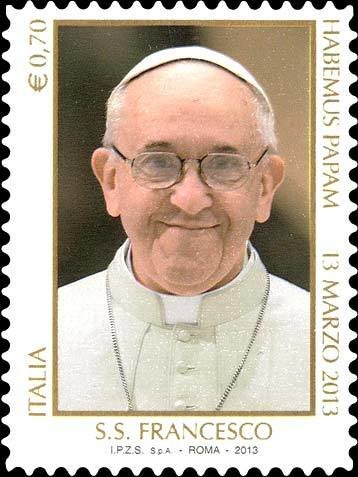 Visibility: public Image owner: none postage 5/2/2013 0,70€ multi issue=Joint issue with Vatican City State and Republic of Argentina - Pontificate of His Holiness Pope Fra unwmk perf=11 Crops No visible images cropped from this one. Measurements Resolution is unknown. Source Source name: Colnect File URL: http://i.colnect.net/b/2169/026/Pope-Francis.jpg Uploaded November 28, 2014, 1:24 am by Stan Shebs |