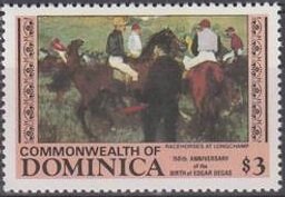 Visibility: public Image owner: none postage 10/30/1984 $3 multi issue=150th Anniversary of the Birth of Edgar Degas d="Racehorses at Longchamp" - Edgar Degas wmk=mult crown & script CA perf=15 Crops No visible images cropped from this one. Measurements Resolution is unknown. Source Source name: Colnect File URL: http://i.colnect.net/b/2017/374/Racehorses-at-Longchamp.jpg Uploaded December 6, 2014, 3:01 pm by Stan Shebs |