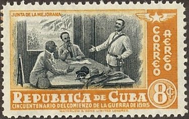 Visibility: public Image owner: none airmail 5/21/1948 8c yelorg&blk issue=50th Anniversary of The War of Independence wmk=star (Cuba) perf=12.5 Crops No visible images cropped from this one. Measurements Resolution is unknown. Source Source name: Colnect File URL: http://i.colnect.net/b/2397/530/Conference.jpg Uploaded January 21, 2015, 3:07 pm by Stan Shebs |