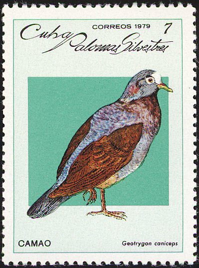 Visibility: public Image owner: none postage 1/30/1979 7c multi dt=doves and pigeons (1979) d=Geotrygon caniceps (1979) unwmk perf=12.75 Crops No visible images cropped from this one. Measurements Resolution is unknown. Source Source name: Colnect File URL: http://i.colnect.net/images/b/2307/509/Grey-headed-Quail-dove-Geotrygon-caniceps.jpg Uploaded January 21, 2015, 4:54 pm by Stan Shebs |