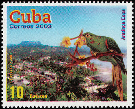Visibility: public Image owner: none postage 9/27/2003 10c multi issue=Ecotourism d=Aratinga euops (2003) unwmk perf=13x12.5 Crops No visible images cropped from this one. Measurements Resolution is unknown. Source Source name: Colnect File URL: http://i.colnect.net/images/b/2134/176/Cuban-Parakeet-Aratinga-eops-Baracoa.jpg Uploaded January 21, 2015, 11:42 pm by Stan Shebs |