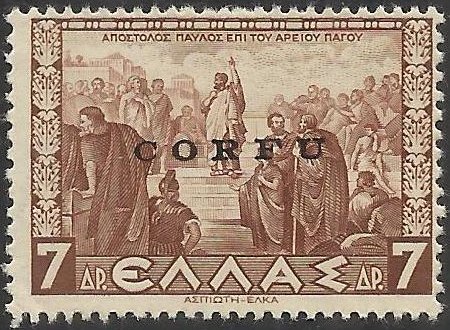 Visibility: public Image owner: none postage 6/5/1941 7d issue=1941 d=Apostle Paul on Arios Pagos ovpt=CORFU oc=blk on=issuer=Greece-issue=1937-7d wmk=crowns Crops No visible images cropped from this one. Measurements Resolution is unknown. Source Source name: Colnect File URL: http://i.colnect.net/b/1692/385/Italian-occupation-1941-issue.jpg Uploaded February 1, 2015, 2:47 am by Stan Shebs |