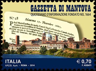 Visibility: public Image owner: none postage 9/1/2014 0,70€ multi issue=350th Anniversary of Foundation of "Gazzetta di Mantova" unwmk Crops No visible images cropped from this one. Measurements Resolution is unknown. Source Source name: Colnect File URL: http://i.colnect.net/b/2415/892/Gazzetta-di-Mantova-Newspaper.jpg Uploaded February 7, 2015, 3:24 pm by Stan Shebs |