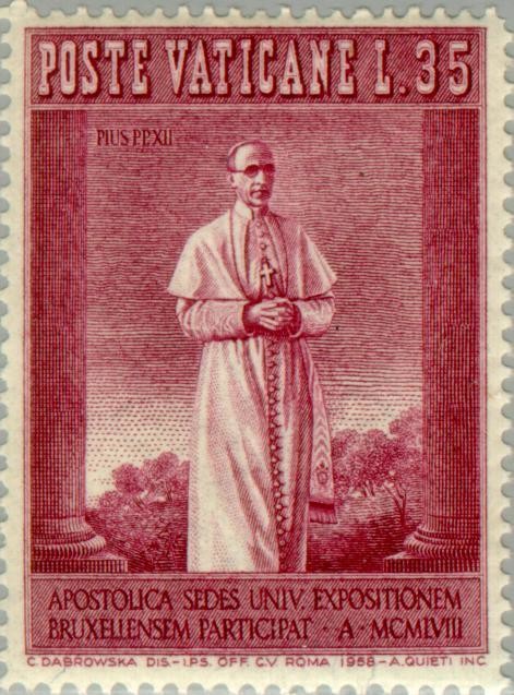 Visibility: public Image owner: none postage 6/19/1958 35l brnred issue=Brussels exposition d=Pius XII wmk=crossed keys Crops No visible images cropped from this one. Measurements Resolution is unknown. Source Source name: Colnect File URL: http://i.colnect.net/b/150/629/Pius-XII.jpg Uploaded August 22, 2014, 11:52 pm by Stan Shebs |