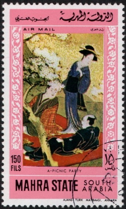 Visibility: public Image owner: none Current identification: Mahra State postage 150f multi issue=Japanese paintings a d=Picnic unwmk perf=11.75x11.5 Crops No visible images cropped from this one. Measurements Resolution is unknown. Source Source name: Colnect File URL: http://i.colnect.net/b/2191/619/Japanese-paintings.jpg Uploaded February 15, 2015, 8:50 pm by Stan Shebs |