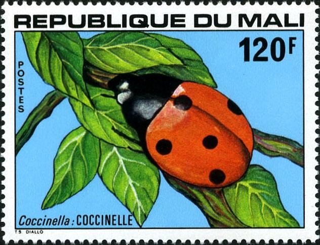 Visibility: public Image owner: none postage 6/12/1978 120fr multi issue=Insects 1978 dt=insects (1978 Mali) d=Coccinella septempunctata (1978) unwmk perf=13 Crops No visible images cropped from this one. Measurements Resolution is unknown. Source Source name: Colnect File URL: http://i.colnect.net/images/b/2502/179/Seven-spot-Ladybird-Coccinella-septempunctata.jpg Uploaded February 18, 2015, 5:42 pm by Stan Shebs |