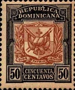 Visibility: public Image owner: none postage 5/11/1905 50c blk&redbrn issue=1901 d=arms of the Dominican Republic (1901) unwmk perf=14 Crops No visible images cropped from this one. Measurements Resolution is unknown. Source Source name: Colnect File URL: http://i.colnect.net/b/2427/297/Coat-of-Arms.jpg Uploaded April 27, 2015, 2:37 am by Stan Shebs |