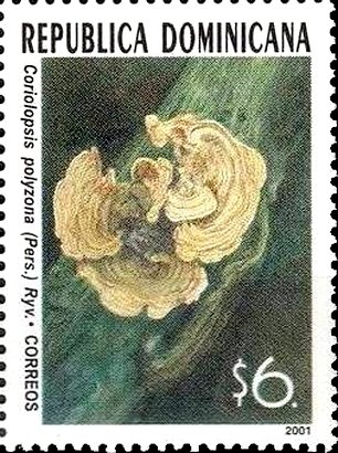 Visibility: public Image owner: none postage 9/13/2001 6p multi dt=Fungi (2001 Dominican Republic) d=Coriolopsis polyzona wmk=crosses & circles perf=13.5x13.75 Crops No visible images cropped from this one. Measurements Resolution is unknown. Source Source name: Colnect File URL: http://i.colnect.net/b/2390/504/Coriolopsis-polyzona.jpg Uploaded April 27, 2015, 3:04 am by Stan Shebs |