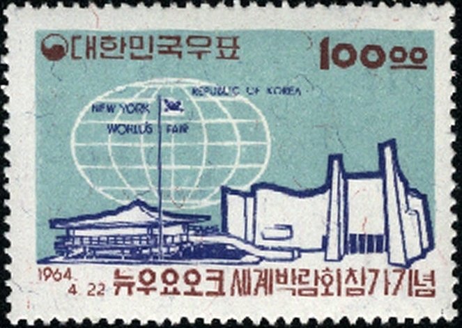 Visibility: public Image owner: none postage 4/22/1964 100w multi issue=New York World's Fair 1964 d=pavilion & globe wmk=winged circle Crops No visible images cropped from this one. Measurements Resolution is unknown. Source Source name: Colnect File URL: http://i.colnect.net/b/2437/032/Korean-Pavilion.jpg Uploaded May 26, 2015, 7:12 pm by Stan Shebs |