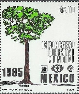 Visibility: public Image owner: none postage 7/1/1985 36.00p multi issue=9th World Forestry Congress wmk=MEX & eagle Crops No visible images cropped from this one. Measurements Resolution is unknown. Source Source name: Colnect File URL: http://i.colnect.net/b/1964/070/IX-Congreso-Forestal-Mundial---Caoba.jpg Uploaded May 27, 2015, 12:55 am by Stan Shebs |