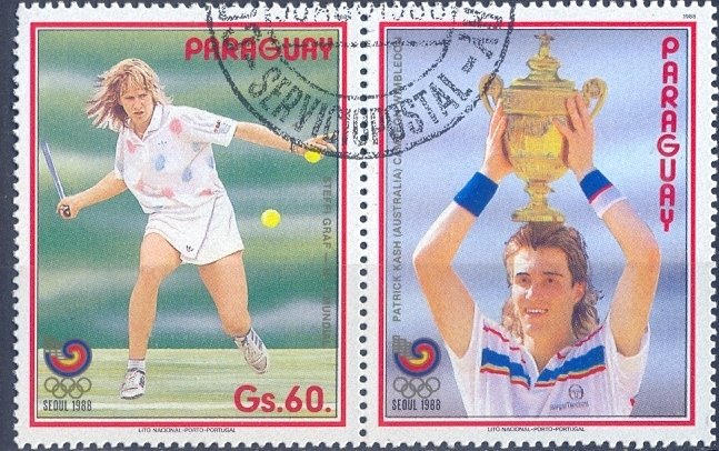 Visibility: public Image owner: none postage 8/16/1988 60g multi issue=Olympics 1988 d d=Steffi Graf (1988 Paraguay) unwmk perf=13x13.25 Crops No visible images cropped from this one. Measurements Resolution is unknown. Source Source name: Colnect File URL: http://i.colnect.net/b/2324/505/Steffi-Graf.jpg Uploaded June 9, 2015, 10:43 pm by Stan Shebs |