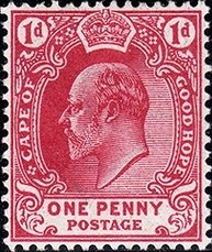 Visibility: public Image owner: none postage 1p carrose issue=1902 d=King Edward VII (1902 Cape of Good Hope 1d) wmk=anchor (1884) perf=14 Crops No visible images cropped from this one. Measurements Resolution is unknown. Source Source name: Colnect File URL: http://i.colnect.net/b/2541/513/King-Edward-VII.jpg Uploaded June 16, 2015, 2:28 pm by Stan Shebs |