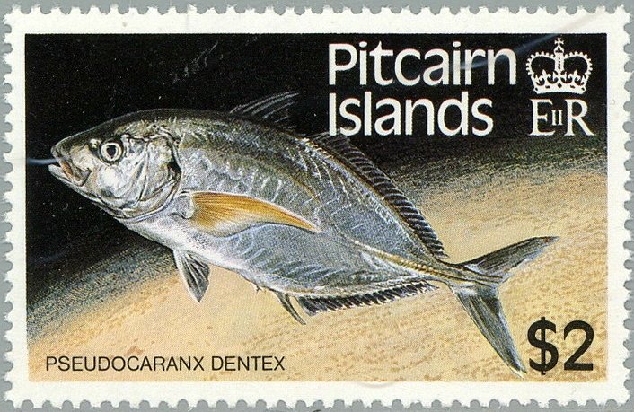 Visibility: public Image owner: none postage 1/11/1984 $2 multi issue=1984 dt=fishes (1984 Pitcairn Islands) d=Pseudocaranx dentex wmk=St Edwards crown & CA perf=14.5 Crops No visible images cropped from this one. Measurements Resolution is unknown. Source Source name: Colnect File URL: http://i.colnect.net/b/2667/783/White-Trevally-Pseudocaranx-dentex.jpg Uploaded June 21, 2015, 4:15 am by Stan Shebs |