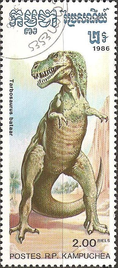Visibility: public Image owner: none postage 3/20/1986 2r multi dt=prehistoric animals (1986) d=Tarbosaurus bataar (1986) unwmk Crops No visible images cropped from this one. Measurements Resolution is unknown. Source Source name: Colnect File URL: http://i.colnect.net/b/2357/444/Tarbosaurus-bataar.jpg Uploaded June 23, 2015, 8:37 pm by Stan Shebs |