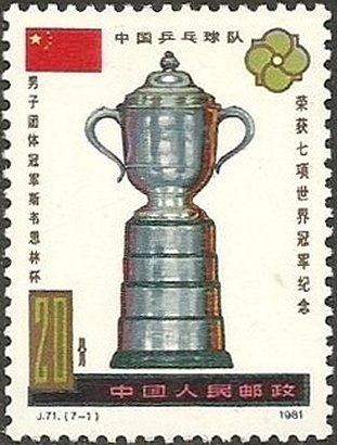 Visibility: public Image owner: none postage 6/30/1981 20f multi issue=Chinese Team's Victories at World Table Tennis Championships d=Swaythling Cup unwmk perf=11.25x11 Crops No visible images cropped from this one. Measurements Resolution is unknown. Source Source name: Colnect File URL: http://i.colnect.net/b/2672/427/Swaythling-Cup.jpg Uploaded June 26, 2015, 4:29 pm by Stan Shebs |
