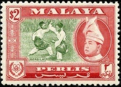 Visibility: public Image owner: none Current identification: Perlis postage 6/26/1957 $2 red&grn issue=Raja Syed Putra pictorials d=bersilat & Raja Syed Putra Crops No visible images cropped from this one. Measurements Resolution is unknown. Source Source name: Colnect File URL: http://i.colnect.net/b/2285/799/Bersilat.jpg Uploaded June 29, 2015, 1:55 pm by Stan Shebs |