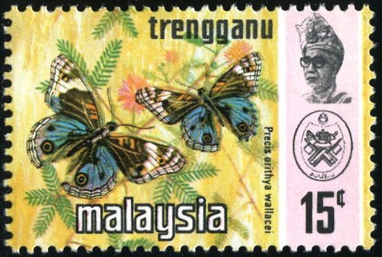 Visibility: public Image owner: none Current identification: Malaysia/Trengganu postage 2/1/1971 15c multi issue=Butterflies 1971 d=Precis orithya wallacei Crops No visible images cropped from this one. Measurements Resolution is unknown. Source Source name: Colnect File URL: http://i.colnect.net/b/1792/653/Blue-Pansy-Precis-orithya-ssp-wallacei.jpg Uploaded June 29, 2015, 2:37 pm by Stan Shebs |
