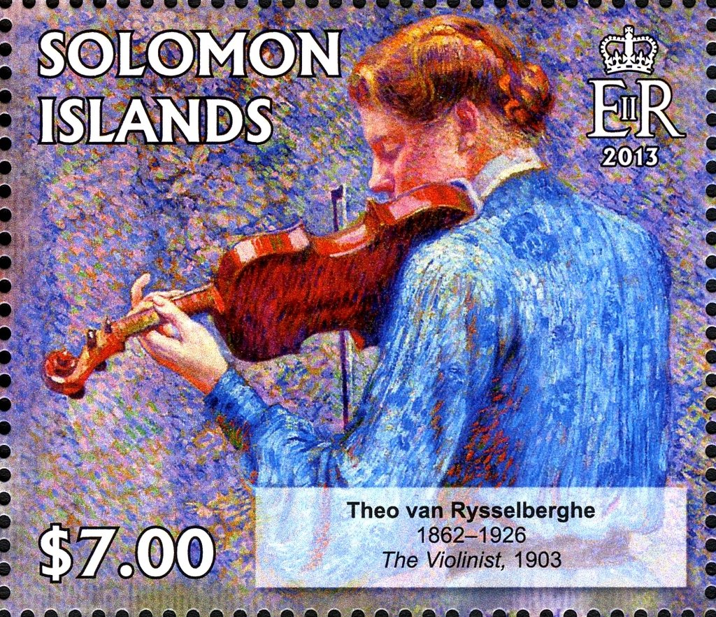 Visibility: public Image owner: none postage 3/29/2013 $7.00 issue=Impressionists 2013 d=The Violinist, by Theo van Rysselberghe unwmk perf=13 Crops No visible images cropped from this one. Measurements Resolution is unknown. Source Source name: Colnect File URL: http://i.colnect.net/b/2590/043/Theo-Van-Rysselberghe.jpg Uploaded July 22, 2015, 10:01 pm by Stan Shebs |