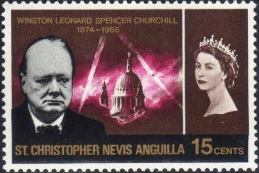 Visibility: public Image owner: none postage 1/24/1966 15c multi issue=Churchill Memorial d=Churchill & St Paul's & Queen Elizabeth II wmk=mult crown & script CA perf=14 Crops No visible images cropped from this one. Measurements Resolution is unknown. Source Source name: Colnect File URL: http://i.colnect.net/b/2402/288/Churchill-Memorial.jpg Uploaded August 12, 2015, 8:20 pm by Stan Shebs |