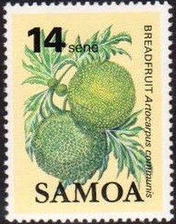 Visibility: public Image owner: none postage 9/28/1983 14s multi issue=1983 dt=fruits (1983 Samoa) d=Artocarpus communis wmk=crown & CA spiral perf=14x13.5 Crops No visible images cropped from this one. Measurements Resolution is unknown. Source Source name: Colnect File URL: http://i.colnect.net/b/2631/822/Breadfruit.jpg Uploaded August 13, 2015, 7:30 pm by Stan Shebs |