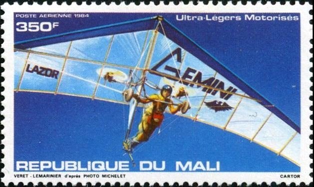 Visibility: public Image owner: none airmail 3/26/1984 350fr multi dt=Microlight Aircraft d=Lazor Gemini Motorized Hang-glider unwmk perf=12.25 Crops No visible images cropped from this one. Measurements Resolution is unknown. Source Source name: Colnect File URL: http://i.colnect.net/b/2514/830/Lazor-Gemini-Motorized-Hang-glider.jpg Uploaded October 5, 2015, 6:28 pm by Stan Shebs |