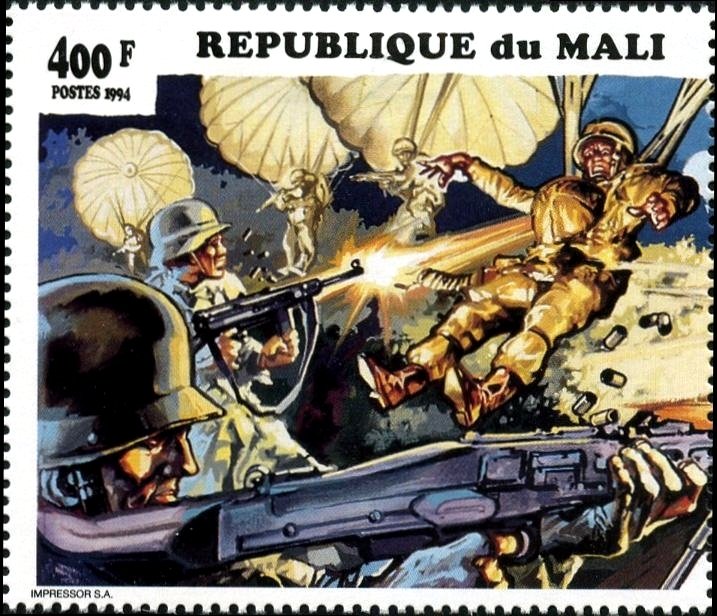 Visibility: public Image owner: none postage 6/6/1994 400fr multi issue=50th Anniversary of D-Day d=Paratroopers & Germans with MGs unwmk Crops No visible images cropped from this one. Measurements Resolution is unknown. Source Source name: Colnect File URL: http://i.colnect.net/b/2593/193/Paratroopers-and-Germans-with-MG-s.jpg Uploaded October 5, 2015, 6:43 pm by Stan Shebs |