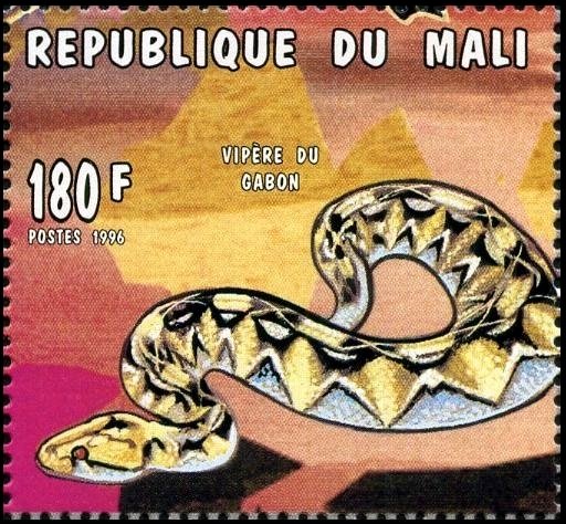 Visibility: public Image owner: none postage 9/2/1996 180fr multi issue=Animals 1996 dt=animals (1996 Mali) d=Bitis gabonica (1996 Mali) unwmk perf=13.25 Crops No visible images cropped from this one. Measurements Resolution is unknown. Source Source name: Colnect File URL: http://i.colnect.net/b/2658/945/Gaboon-Viper-Bitis-gabonica.jpg Uploaded October 5, 2015, 7:15 pm by Stan Shebs |