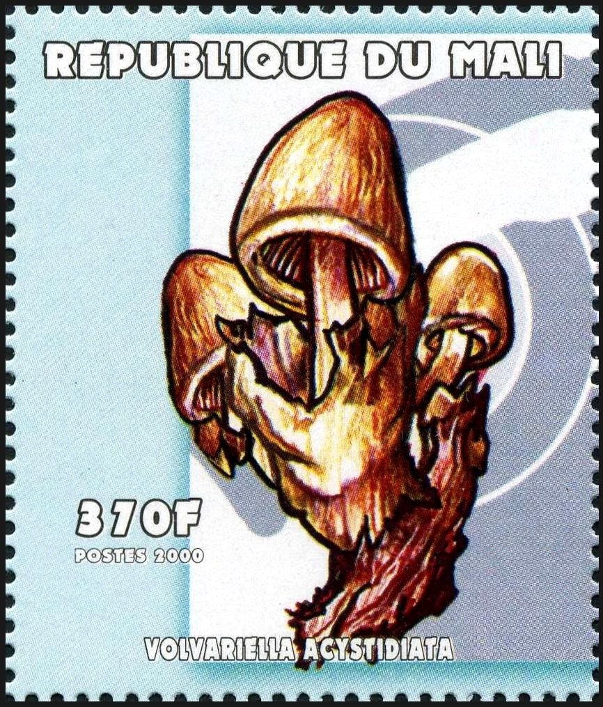 Visibility: public Image owner: none postage 9/25/2000 370fr multi issue=Fungi of the World dt=Fungi of the World d=Volvariella acystidiata unwmk perf=13.25 Crops No visible images cropped from this one. Measurements Resolution is unknown. Source Source name: Colnect File URL: http://i.colnect.net/b/2606/960/Volvariella-acystidiata.jpg Uploaded October 5, 2015, 7:24 pm by Stan Shebs |