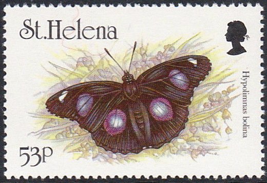 Visibility: public Image owner: none postage 8/9/1994 53p multi dt=butterflies (1994 St. Helena) d=Hypolimnas bolina (1994 St. Helena) wmk=mult crown & script CA Crops No visible images cropped from this one. Measurements Resolution is unknown. Source Source name: Colnect File URL: http://i.colnect.net/b/2529/885/Great-Eggfly-Hypolimnas-bolina.jpg Uploaded October 7, 2015, 4:46 pm by Stan Shebs |