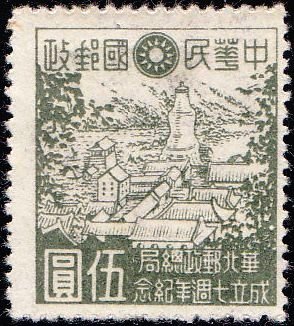 Visibility: public Image owner: none postage 8/15/1945 $5 graygrn issue=postal directorate 7th d=Wutai Mountain Crops No visible images cropped from this one. Measurements Resolution is unknown. Source Source name: Colnect File URL: http://i.colnect.net/b/2066/282/7-Years-Postal-Sovereignty.jpg Uploaded October 22, 2015, 3:25 am by Stan Shebs |