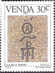 Visibility: public Image owner: none postage 4/10/1986 30c multi issue=History of Writing 1986 unwmk Crops No visible images cropped from this one. Measurements Resolution is unknown. Source Source name: Colnect File URL: http://i.colnect.net/b/2840/089/History-of-writing-Cyrillic.jpg Uploaded October 22, 2015, 12:54 pm by Stan Shebs |