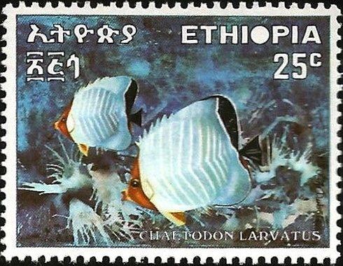 Visibility: public Image owner: none postage 6/19/1970 25c multi dt=fishes (1970 Ethiopia) d=Chaetodon larvatus (1970) unwmk perf=12.5 Crops No visible images cropped from this one. Measurements Resolution is unknown. Source Source name: Colnect File URL: http://i.colnect.net/images/b/2666/587/Hooded-Butterflyfish-Chaetodon-larvatus.jpg Uploaded November 5, 2015, 6:12 pm by Stan Shebs |