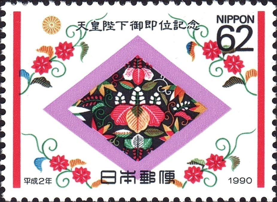 Visibility: public Image owner: none postage 11/9/1990 62y multi issue=Akihito enthronement d=diamond pattern unwmk Crops No visible images cropped from this one. Measurements Resolution is unknown. Source Source name: Colnect File URL: http://i.colnect.net/images/b/2609/049/Enthronement-of-Emperor-Akihito.jpg Uploaded November 12, 2015, 9:50 pm by Stan Shebs |