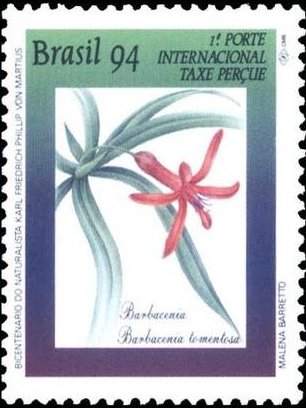 Visibility: public Image owner: none postage 4/24/1994 0cr multi issue=200th Anniversary of the Birth of Karl Friedrich Phillip von Martius d=Barbacena - Barbacenia tomentosa unwmk perf=12x11.5 Crops No visible images cropped from this one. Measurements Resolution is unknown. Source Source name: Colnect File URL: http://i.colnect.net/b/2506/943/Barbacena---Barbacenia-tomentosa.jpg Uploaded November 22, 2015, 6:08 pm by Stan Shebs |