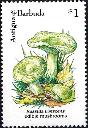 Visibility: public Image owner: none postage 5/18/1992 $1 multi dt=mushrooms (1992 Antigua) d=Russula virescens (1992) unwmk perf=14 Crops No visible images cropped from this one. Measurements Resolution is unknown. Source Source name: Colnect File URL: http://i.colnect.net/b/2959/559/Russula-Virescens.jpg Uploaded May 4, 2016, 3:05 pm by Stan Shebs |