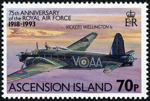 Visibility: public Image owner: none postage 4/1/1993 70p multi issue=Royal Air Force 75th d=Vickers Wellington 1c wmk=St Edwards crown & CA Crops No visible images cropped from this one. Measurements Resolution is unknown. Source Source name: Colnect File URL: http://i.colnect.net/b/2358/525/Vickers-Wellington-1C.jpg Uploaded May 6, 2016, 8:56 pm by Stan Shebs |