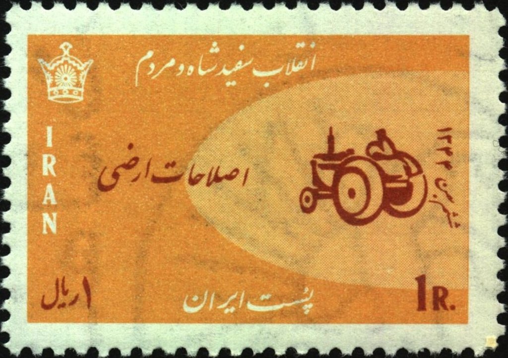 Visibility: public Image owner: none postage 1/26/1966 1r org&orgbrn issue=3rd Anniversary of the White Revolution d=tractor (1966) wmk=arms of Iran in circle perf=10.5 Crops No visible images cropped from this one. Measurements Resolution is unknown. Source Source name: Colnect File URL: http://i.colnect.net/images/b/2339/227/Agriculture-Tractor.jpg Uploaded May 7, 2016, 1:52 pm by Stan Shebs |