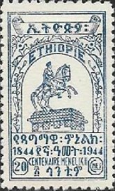 Visibility: public Image owner: none postage 12/31/1944 20c dpbl issue=Menelik II 100th d=Menelik II statue unwmk Crops No visible images cropped from this one. Measurements Resolution is unknown. Source Source name: Colnect File URL: http://i.colnect.net/b/3309/090/Statue-of-Menelik-II.jpg Uploaded June 6, 2016, 6:52 pm by Stan Shebs |
